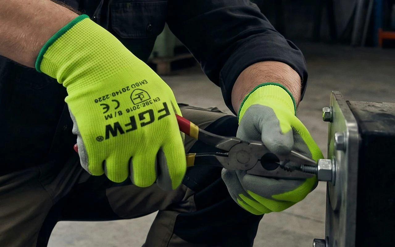 Το φωσφορίζον ύφασμα κάνει τη θέση των χεριών ευδιάκριτη σε σκοτεινούς χώρους. Οι ομάδες αντιλαμβάνονται αμέσως τα σήματα, κάτι που βοηθά να αποφεύγονται επικίνδυνα λάθη κοντά σε μηχανήματα.