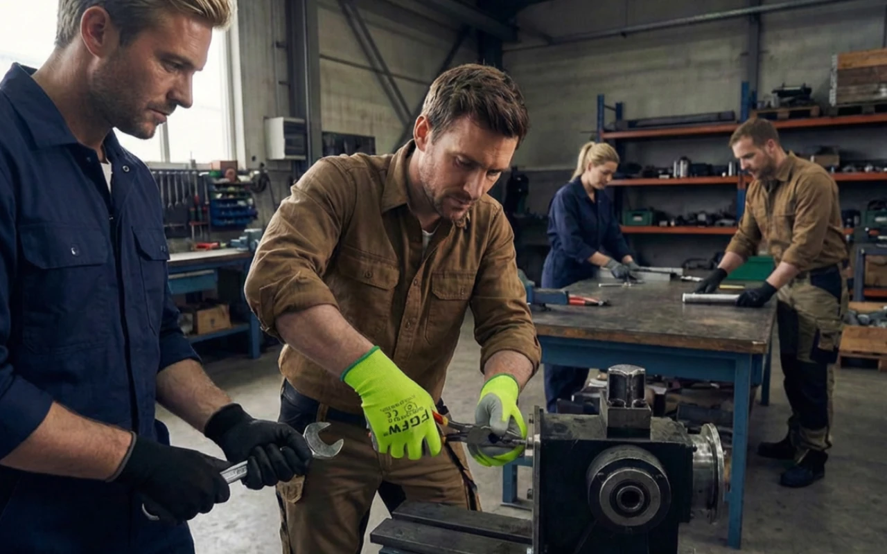 Οι ειδικές παλάμες PU εμποδίζουν τα εργαλεία να γλιστρούν από ιδρωμένα δάχτυλα. Η σταθερή λαβή βελτιώνει την ακρίβεια και μειώνει τα ατυχήματα κατά τη διάρκεια απαιτητικών εργάσιμων ημερών.