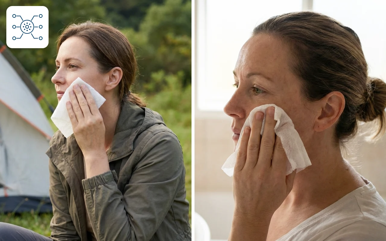 Ιδανικό για πλύσιμο, ταξίδια, αθλητισμό και ομορφιά. Καθαρίζει επιφάνειες, πρόσωπα και χέρια οπουδήποτε, όποτε το χρειαστείτε.