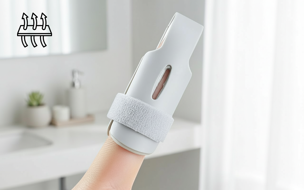 Ειδικές οπές επιτρέπουν την κυκλοφορία του αέρα, κρατώντας το δέρμα δροσερό και φρέσκο. Φορέστε το νάρθηκα δαχτύλου Ortorex περισσότερη ώρα χωρίς εφίδρωση ή φαγούρα.
