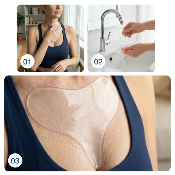 Έχω δοκιμάσει πολλά κόλπα αλλά αυτό το αυτοκόλλητο δίνει τα καλύτερα αποτελέσματα. Το δέρμα φαίνεται πιο γεμάτο, οι γραμμές στο στήθος είναι λιγότερο εμφανείς και είναι πάντα απαλό στη χρήση.