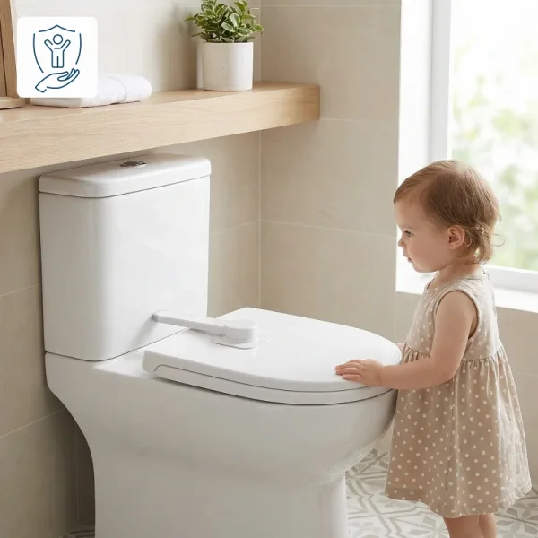 Η κλειδαριά της λεκάνης φαίνεται απλή, αλλά είναι πολύ δυνατή. Εντυπωσιασμένη από την ποιότητα! Διευκολύνει και τον καθαρισμό του μπάνιου.