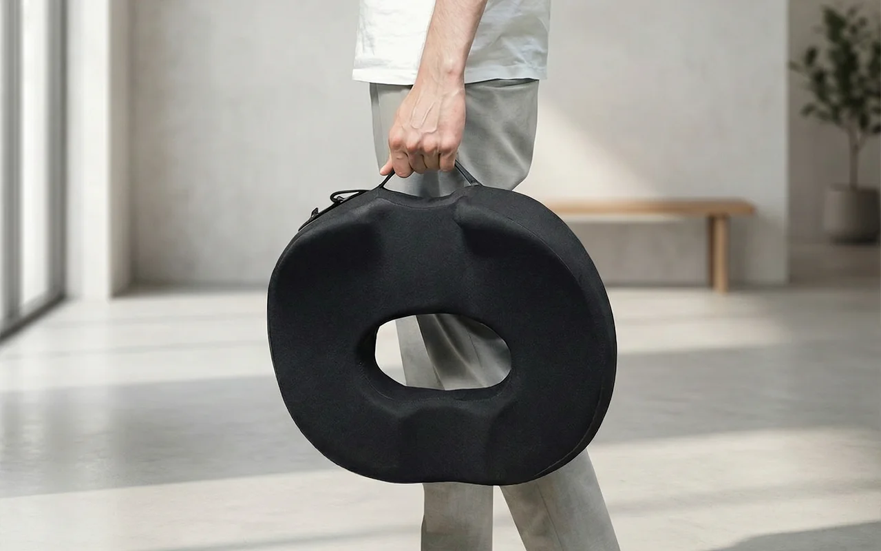 Η λαβή και το άγκιστρο μεταφοράς σας επιτρέπουν να απολαμβάνετε άνεση παντού. Χρησιμοποιήστε το μαξιλάρι καθίσματος Ortorex στο σπίτι, στο γραφείο ή σε ταξίδια.