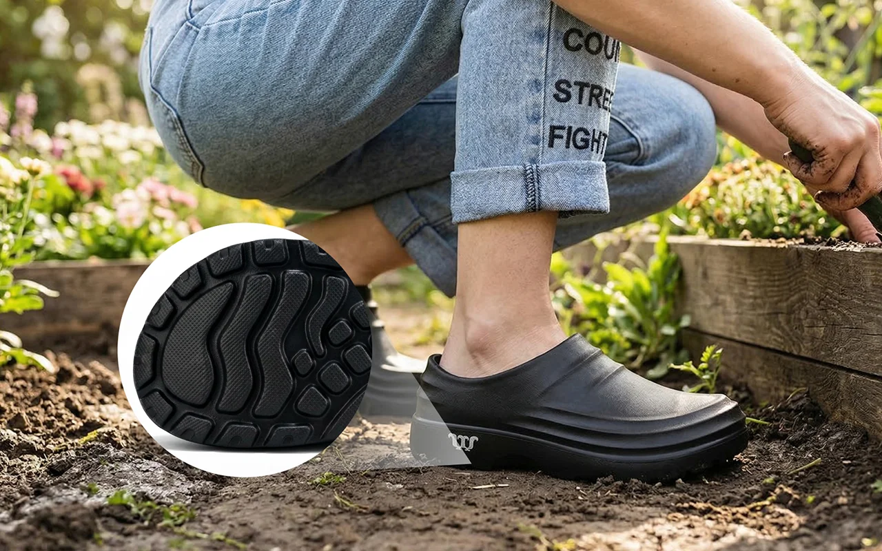Τα χρησιμοποιώ όταν πλένω το αυτοκίνητο και κουρεύω το γκαζόν. Η πρόσφυση στο βρεγμένο τσιμέντο είναι εξαιρετική, οι καμάρες μου νιώθουν υποστήριξη και τα πόδια μου μένουν στεγνά και άνετα.