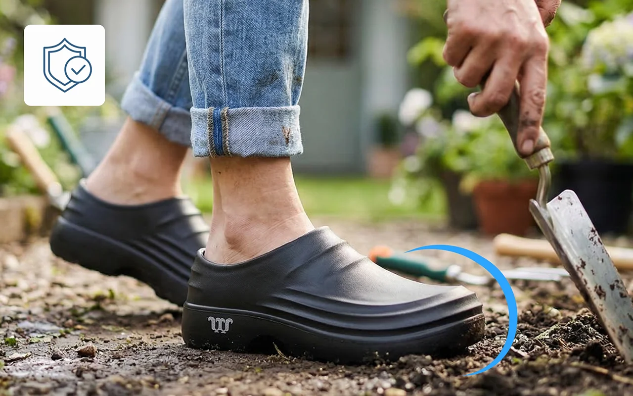 Κινηθείτε με σιγουριά σε βρεγμένο γρασίδι ή λασπωμένα μονοπάτια χωρίς να γλιστράτε. Ο στιβαρός σχεδιασμός σας κρατάει σταθερούς όπου κι αν πάτε.