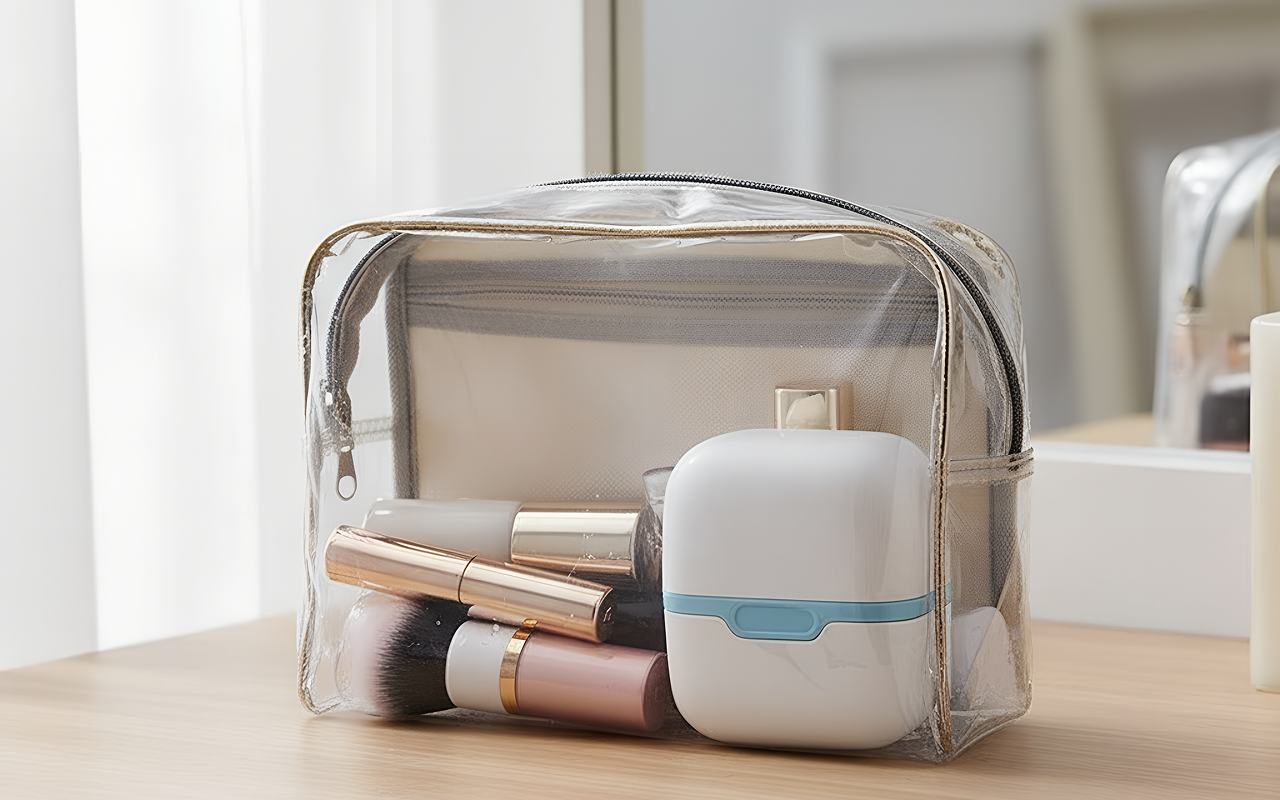 Φυλάω το παγορόλερ σε ένα μικρό τσαντάκι για ταξίδια. Μετά τις πτήσεις, το περνάω πάνω από το κουρασμένο πρόσωπό μου και τα σφίγγει όλα τόσο ωραία.
