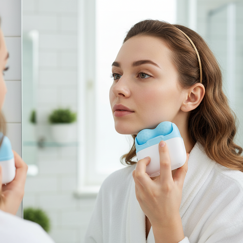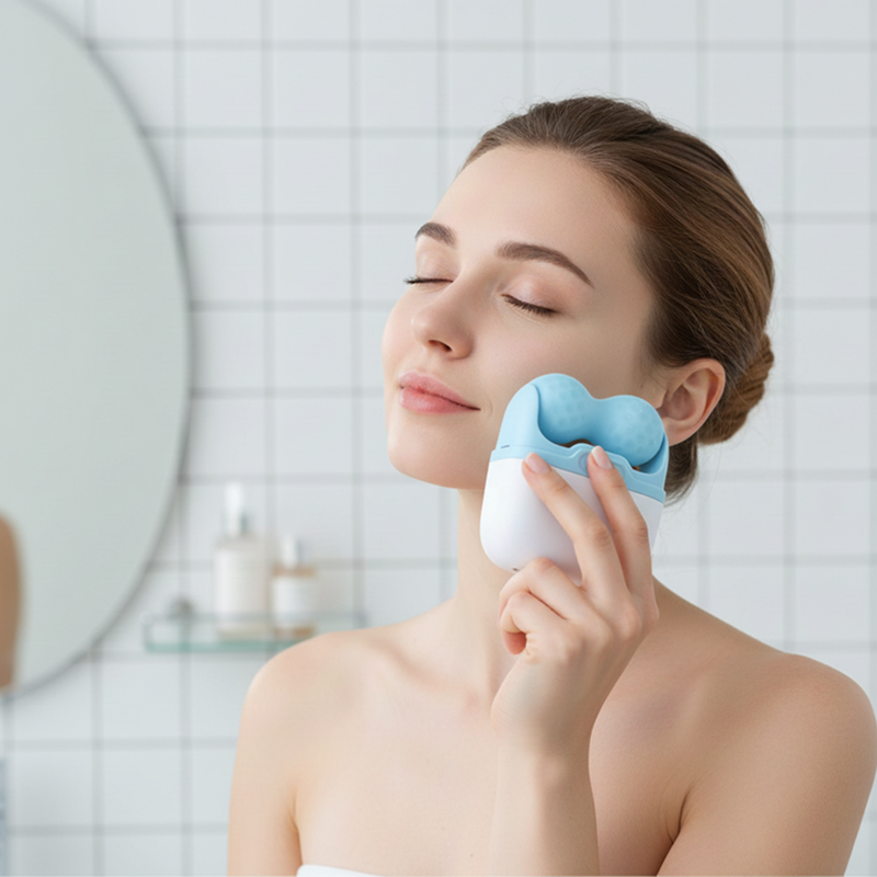 Κρατάω αυτό το μικρό παγορόλερ στο ψυγείο και το χρησιμοποιώ κάθε πρωί. Τα πρησμένα μάγουλά μου ξεφουσκώνουν γρήγορα και το μακιγιάζ μου κάθεται καλύτερα.