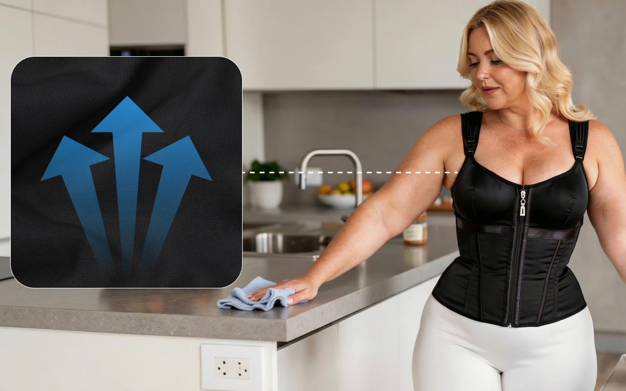 Τα ρούχα εφαρμόζουν καλύτερα και οι καμπύλες φαίνονται ομαλές. Η μέση φαίνεται πιο λεπτή ενώ η στάση του σώματος βελτιώνεται.