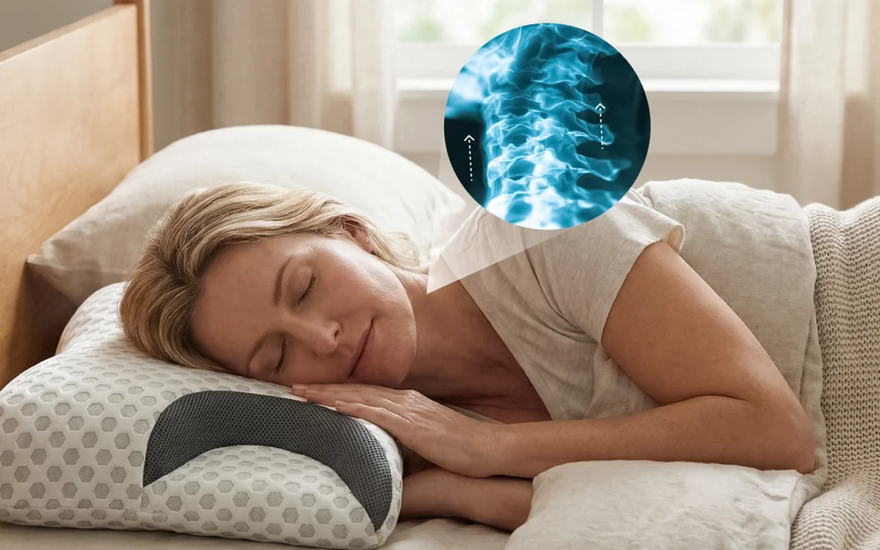 Ο ύπνος όλη τη νύχτα μπορεί να γίνει ξανά εύκολος και ήρεμος. Το εργονομικό μαξιλάρι Ortorex CPAP αγκαλιάζει απαλά το κεφάλι και τους ώμους σας. Απολαύστε ξεκούραστο ύπνο χωρίς να ανησυχείτε για διαρροές μάσκας ή δυσφορία. Ξεκινήστε κάθε μέρα νιώθοντας αναζωογονημένοι και έτοιμοι για όλα.