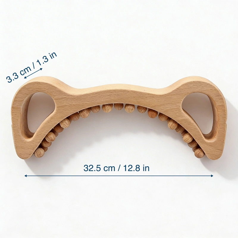 Κάθομαι σε γραφείο όλη μέρα και τα πόδια μου βαραίνουν. Δέκα λεπτά με αυτό το καμπύλο ξύλινο εργαλείο και οι γάμπες μου νιώθουν πιο ελαφριές, σχεδόν σαν μετά από έναν περίπατο.