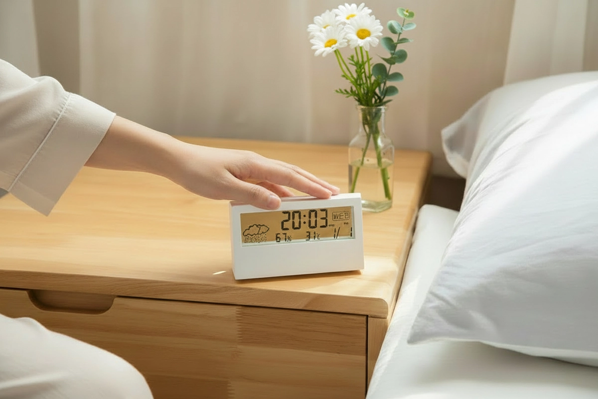 Κάθεται ακριβώς πάνω στο κομοδίνο μου και το ελέγχω όποτε χρειάζομαι. Το ξυπνητήρι είναι πολύ χρήσιμο για τα πρωινά του σχολείου.