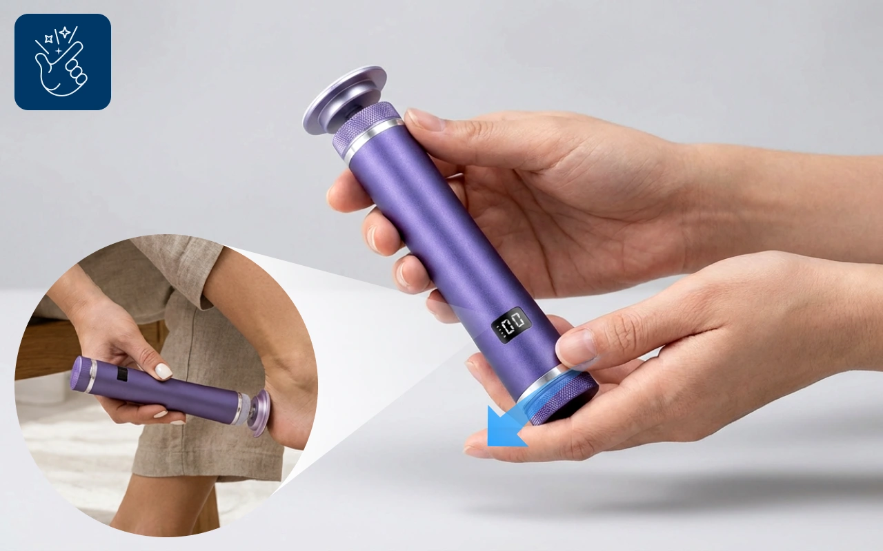 Απλοί χειρισμοί και ρυθμιζόμενη ταχύτητα κάνουν την περιποίηση των ποδιών χωρίς άγχος. Ελαφρύς σχεδιασμός για άνεση σε κάθε ρουτίνα.