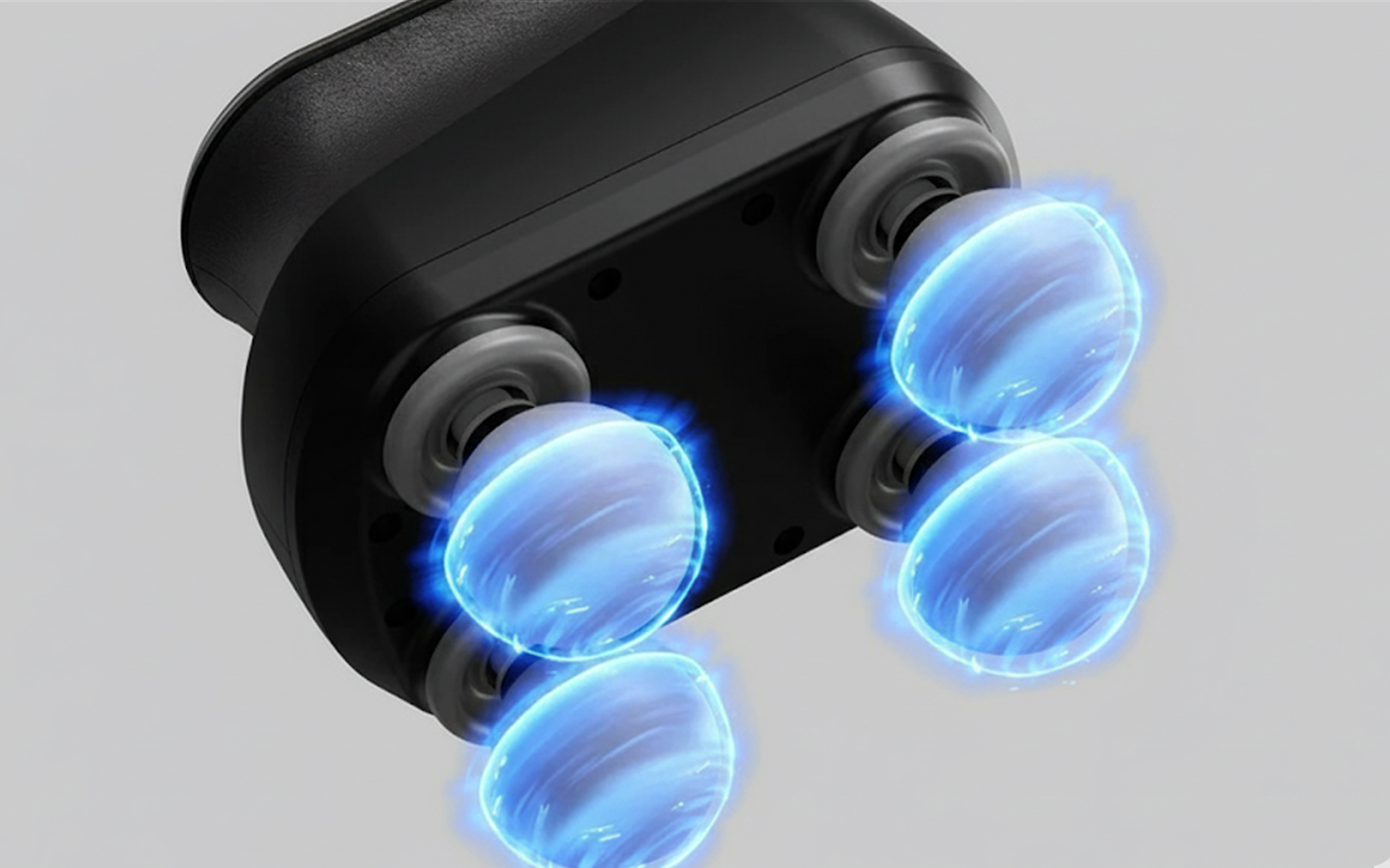 Τέσσερις κεφαλές λειτουργούν ταυτόχρονα, προσφέροντας άνεση σε μεγάλη επιφάνεια. Ανακουφίστε γρήγορα την πλάτη, τους ώμους ή τα πόδια σας.