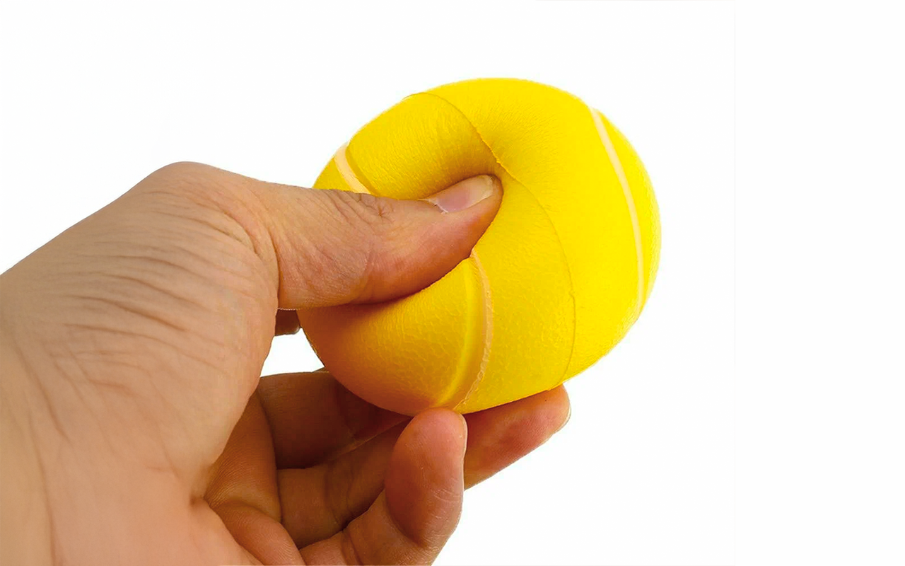 Τα δάχτυλά μου ήταν άκαμπτα από το πολύ πληκτρολόγιο, αλλά πιέζοντας τη θεραπευτική μπάλα στα διαλείμματα τα χαλαρώνει. Πολύ μαλακή κιόλας.