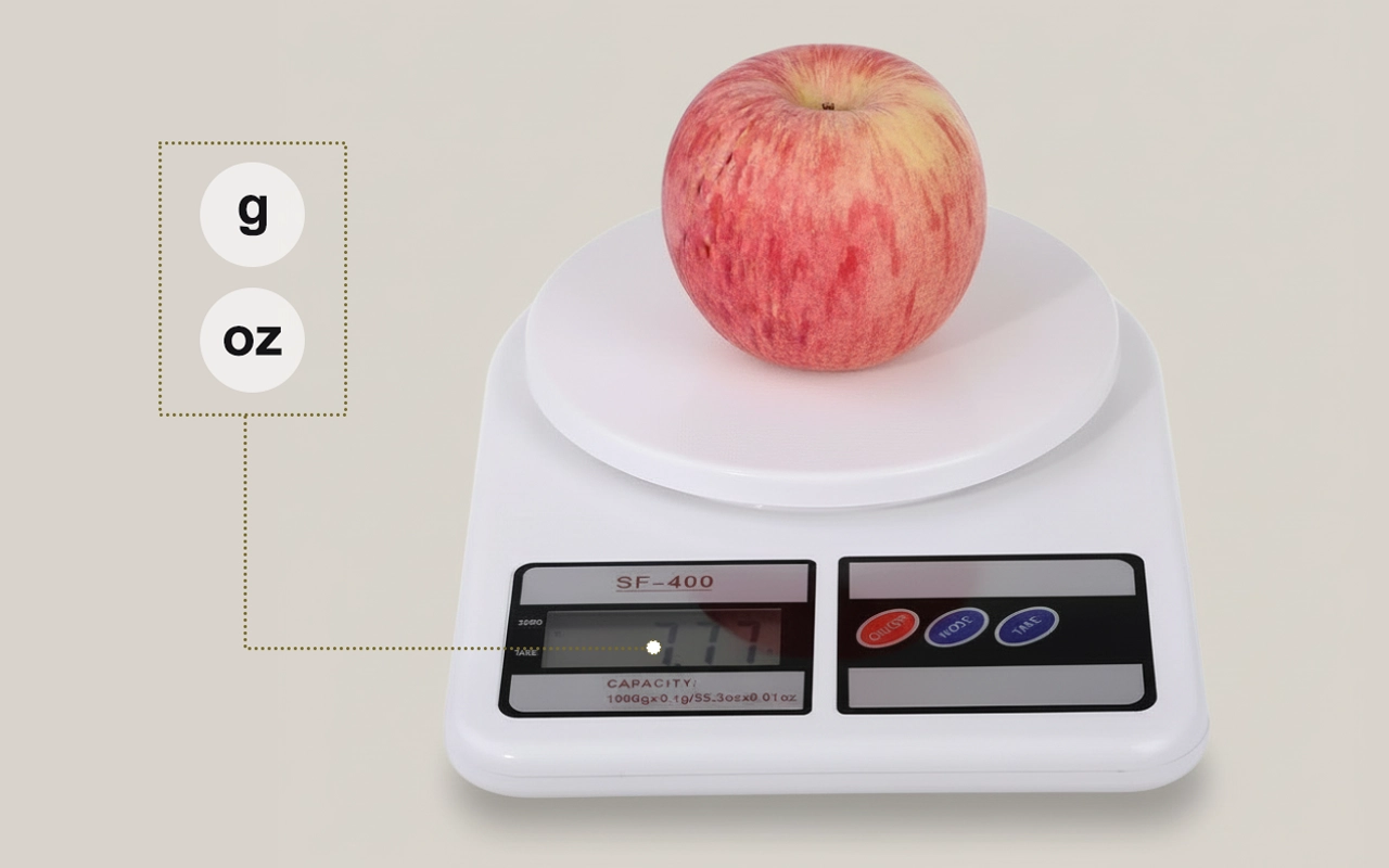 Η ζυγαριά κουζίνας μας σας επιτρέπει να επιλέξετε μεταξύ oz και kg.