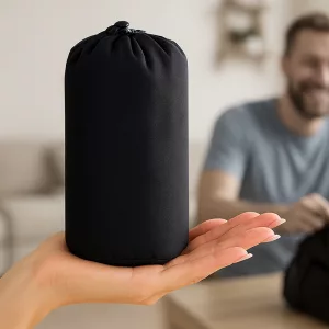 Φουσκώνει τόσο γρήγορα και μπορώ να το κάνω όσο μαλακό ή σκληρό θέλω. Το ύφασμα είναι πολύ απαλό και το καθάρισμα εξαιρετικά εύκολο. Πλέον δεν ταξιδεύω χωρίς αυτό.