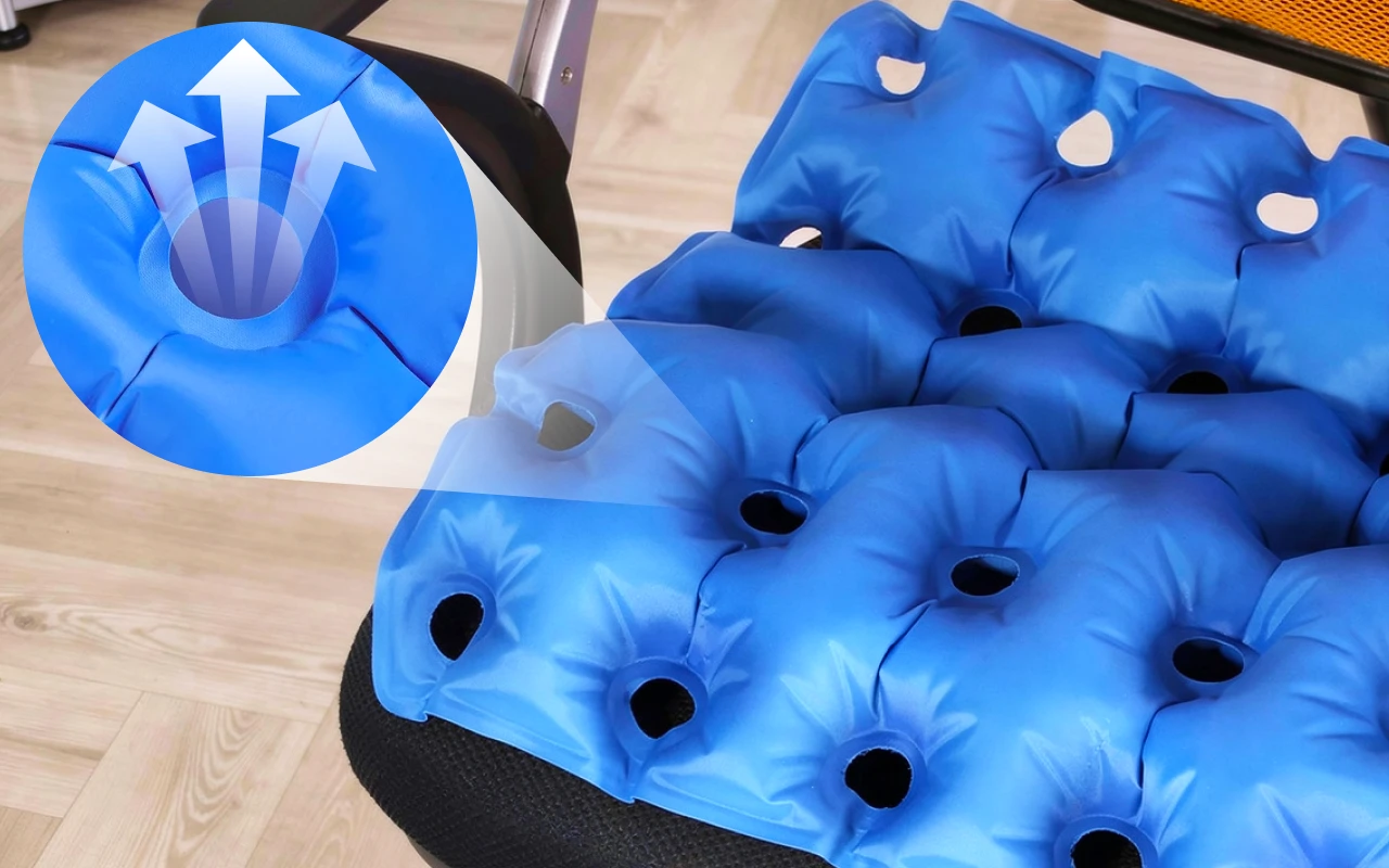 Χρησιμοποιώ αυτό το μαξιλάρι στο γραφείο μου και στο αυτοκίνητο. Βοηθάει με τον πόνο μου και οι μικρές τρύπες το κρατούν άνετο και χωρίς ιδρώτα.
