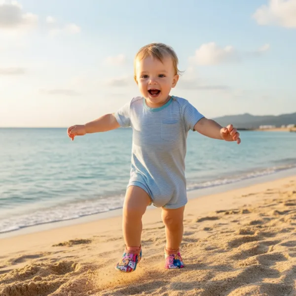 Ιδανικά για πισίνα και παιδική χαρά. Στεγνώνουν σχεδόν αμέσως και βοηθούν την κόρη μου να τρέχει χωρίς να γλιστράει, οπότε νιώθω πιο ήσυχος όταν παίζει.