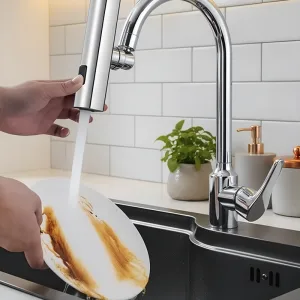 Ο ψεκαστήρας βρύσης έκανε το πλύσιμο των κατσαρολών πολύ πιο εύκολο. Η περιστρεφόμενη κεφαλή φτάνει σε κάθε γωνία και η εναλλαγή ψεκασμών βοηθά να ξεπλένω τα λαχανικά τέλεια. Ήταν τόσο εύκολο να το τοποθετήσω!