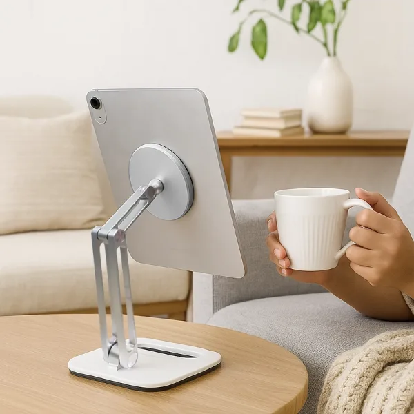 Είμαι πολύ χαρούμενη με το πόσο σταθερή κρατά αυτή η συσκευή το Samsung tablet μου. Επιπλέον, δείχνει όμορφη και τακτοποιημένη μαζί με τα άλλα μου αντικείμενα στο τραπέζι.