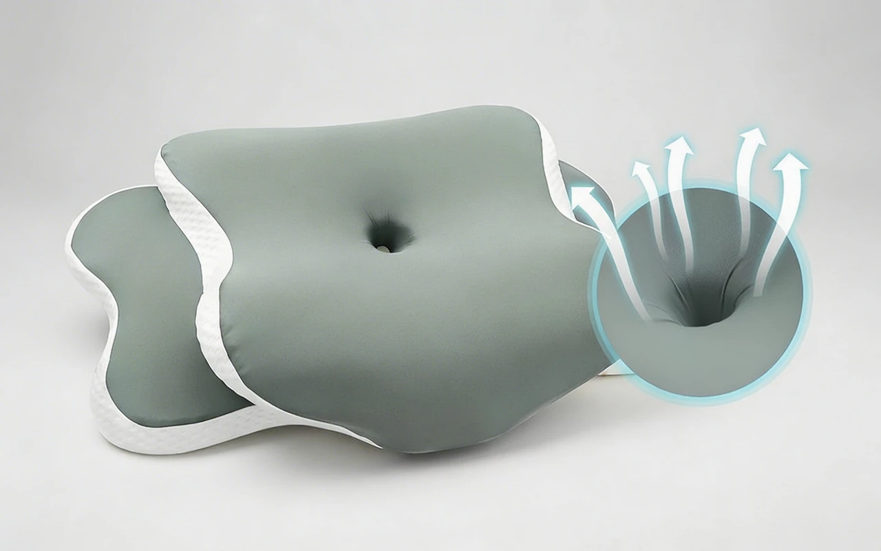 Ο αέρας κυκλοφορεί εύκολα μέσα στο μαξιλάρι για να μειώσει την υπερθέρμανση κατά τη διάρκεια της νύχτας. Η φρεσκάδα και η άνεση διατηρούνται για ώρες συνεχόμενης ξεκούρασης.