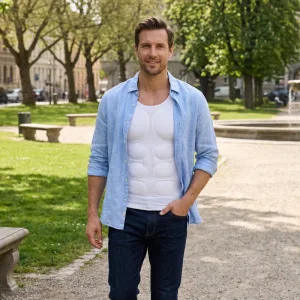 Φόρεσα αυτό το μπλουζάκι με κοιλιακούς στο reunion του λυκείου μου και όλοι με ρωτούσαν πώς έγινα τόσο fit. Ήταν άνετο όλο το βράδυ και φαινόταν αληθινό κάτω από το πουκάμισο.