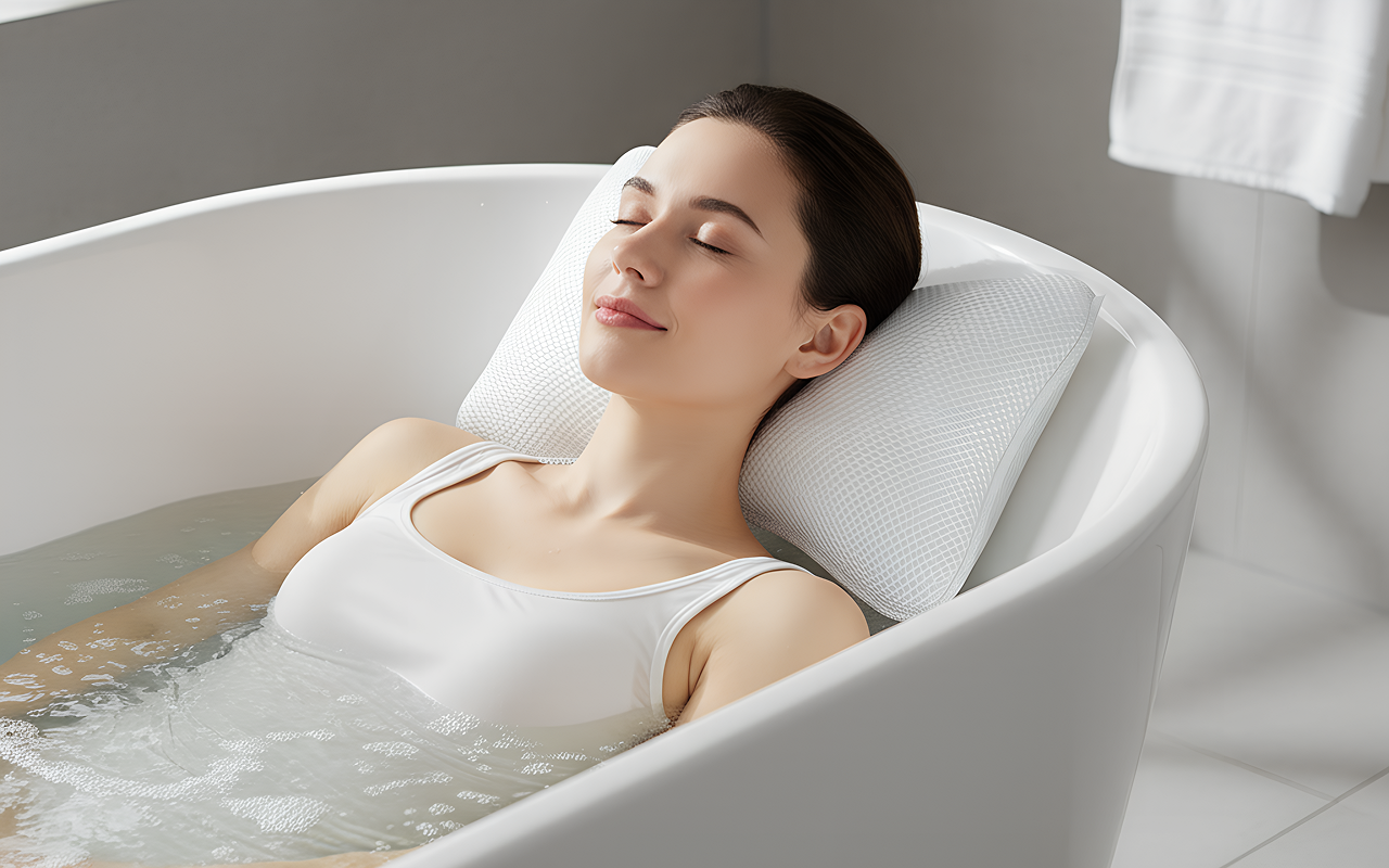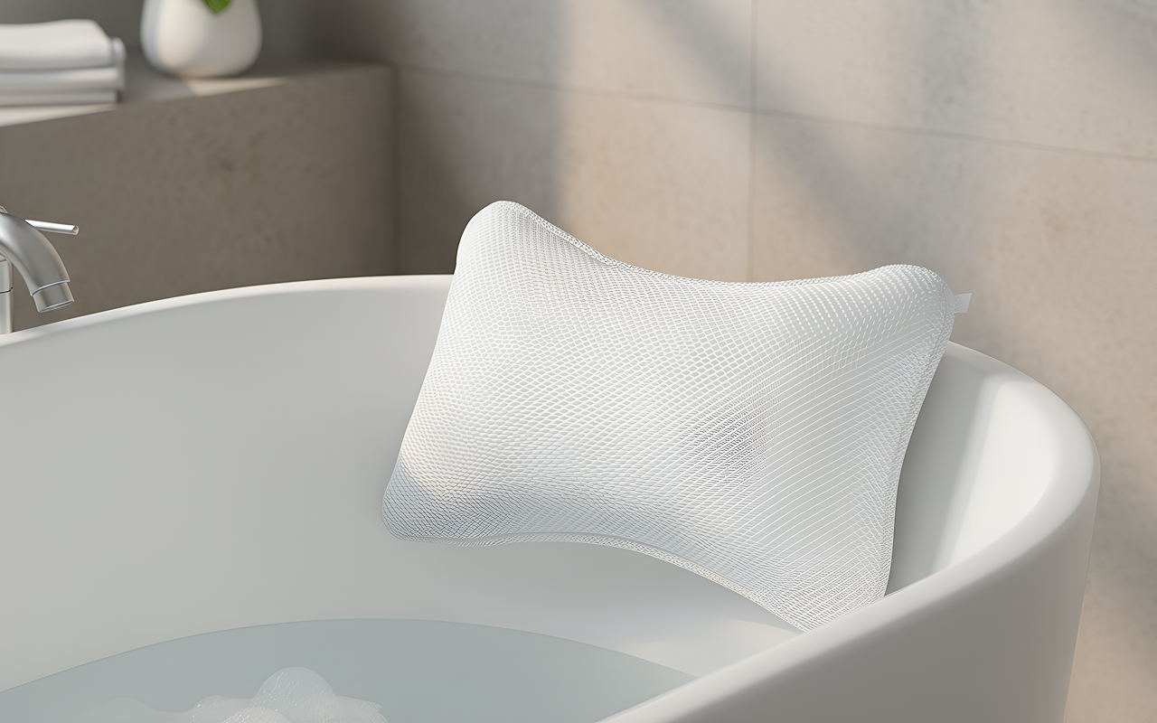 Τέλος οι ολισθήσεις στη μπανιέρα! Οι βεντούζες του μαξιλαριού το κρατούν σταθερό όσο χαλαρώνω.