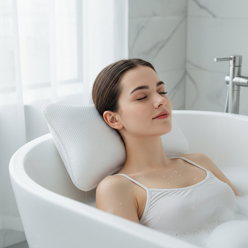 Τέλος οι ολισθήσεις στη μπανιέρα! Οι βεντούζες του μαξιλαριού το κρατούν σταθερό όσο χαλαρώνω.