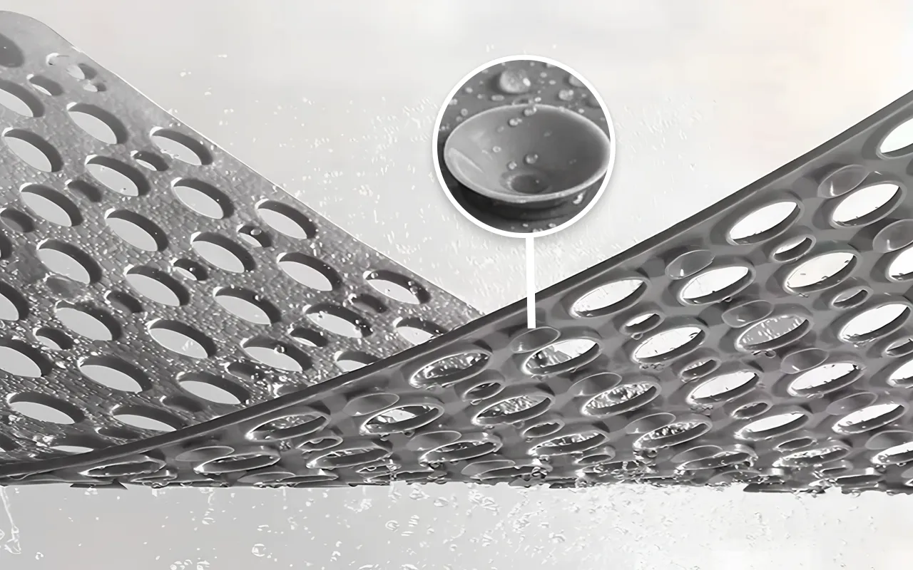 Τα υψηλής αντοχής βεντουζάκια κρατούν το χαλάκι σταθερά στη θέση του πάνω στα βρεγμένα πλακάκια. Η οικογένειά σας κινείται με σιγουριά, χωρίς ξαφνικές ολισθήσεις.