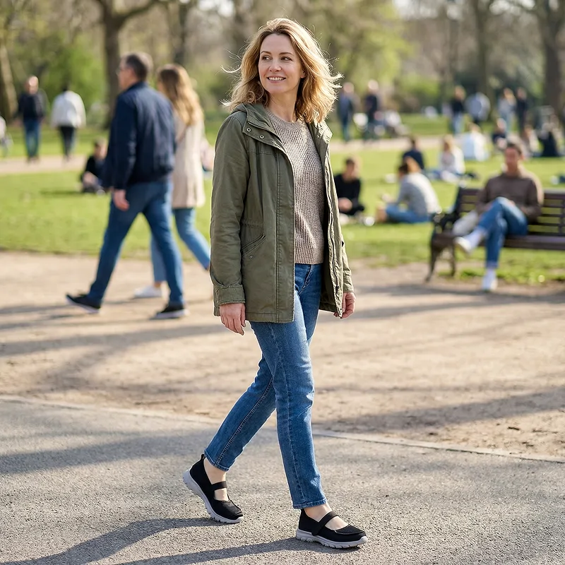 Ο σχεδιασμός μειώνει την καταπόνηση των αρθρώσεων και τα σημεία πίεσης κατά τη στάση ή το περπάτημα. Τα πόδια αισθάνονται υποστήριξη αντί για περιορισμό, ακόμη και μετά από πολλές ώρες.