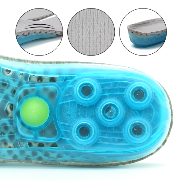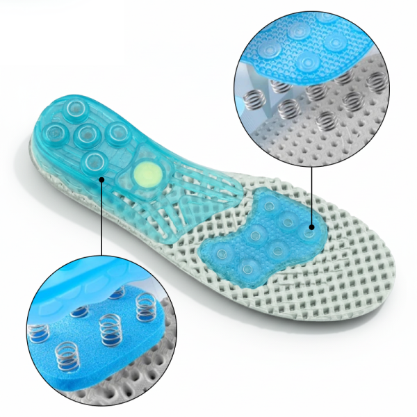 Η μοναδική τεχνολογία ελατηρίων απορροφά τους κραδασμούς και μειώνει την καταπόνηση των μυών. Η ανακούφιση έρχεται γρήγορα, βοηθώντας τις πονεμένες φτέρνες και καμάρες να ανακάμψουν άμεσα.