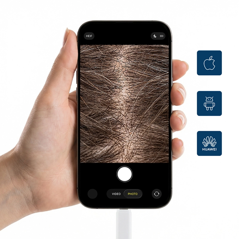 Η κάμερα μαλλιών Ortorex σας επιτρέπει να δείτε το δέρμα από κοντά χωρίς παραμόρφωση. Μπορείτε να εντοπίσετε κρυφά προβλήματα γρήγορα και εύκολα.