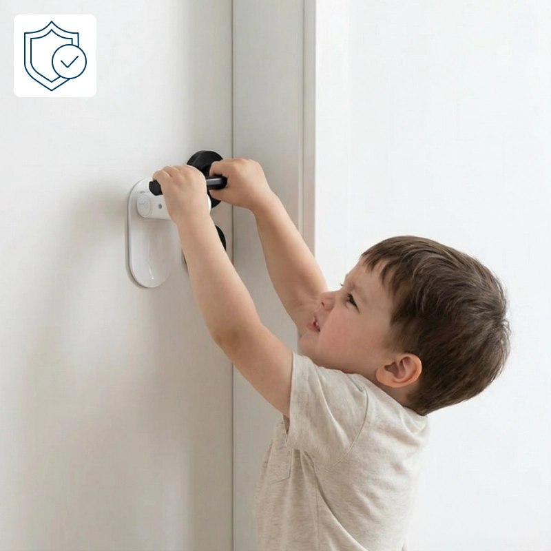 Τα περίεργα μικρά χέρια συχνά φτάνουν γρήγορα στα χερούλια των πορτών. Ανεπιθύμητες εξόδους μπορεί να συμβούν μέσα σε δευτερόλεπτα και να προκαλέσουν ανησυχία στις οικογένειες. Η κλειδαριά ασφαλείας Ortorex προσφέρει ηρεμία με μια απλή και αποτελεσματική προσέγγιση. Απολαύστε την ελευθερία από το άγχος γνωρίζοντας ότι οι αγαπημένοι σας παραμένουν προστατευμένοι.