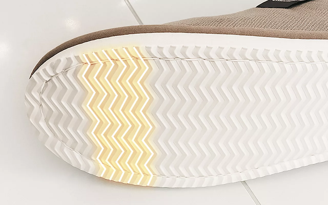 Ανάγλυφες σόλες προσφέρουν σταθερότητα σε ξύλο, πλακάκι ή χαλί. Κάθε βήμα είναι ασφαλές, βοηθώντας στην αποφυγή απρόσμενων πτώσεων εντός σπιτιού.