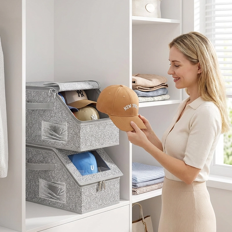Μου αρέσει που μπορώ να δω τι υπάρχει μέσα χωρίς να ανοίξω τίποτα. Τα καπέλα μου μένουν καθαρά και χωρίς σκόνη, και έχω επιπλέον χώρο για περισσότερα πράγματα στα ράφια.