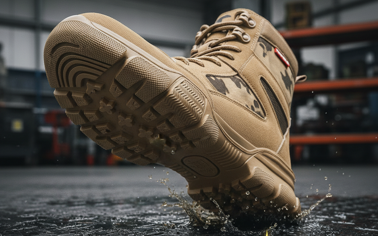 Ειδική σόλα προσφέρει καλύτερη πρόσφυση για να αποτρέψει γλιστρήματα ή πτώσεις. Αξιόπιστη σταθερότητα για σίγουρο περπάτημα σε ανώμαλο ή λαδωμένο έδαφος.