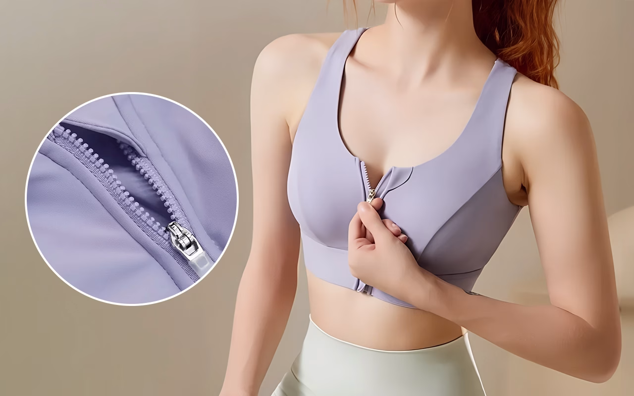 Το φερμουάρ μπροστά κάνει την αλλαγή πριν και μετά τη γιόγκα πολύ εύκολη. Η υποστήριξη κρατάει τα πάντα στη θέση τους ακόμα και όταν πηδάω κατά την αεροβική.