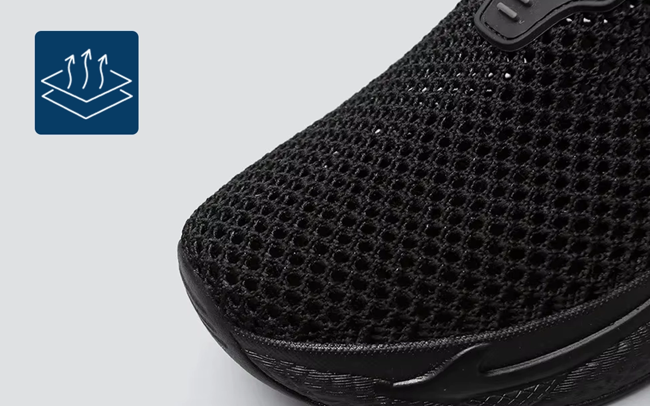 Το μαλακό διχτυωτό υλικό επιτρέπει στον αέρα να κυκλοφορεί ελεύθερα ώστε τα πόδια να παραμένουν στεγνά. Οι πάτοι απορροφούν τους κραδασμούς και μειώνουν την πίεση όλη μέρα.