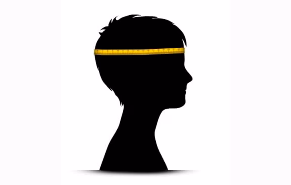 - 1. Τυλίξτε τη μεζούρα γύρω από το πιο φαρδύ σημείο του κεφαλιού, ακριβώς πάνω από τα φρύδια και τα αυτιά.