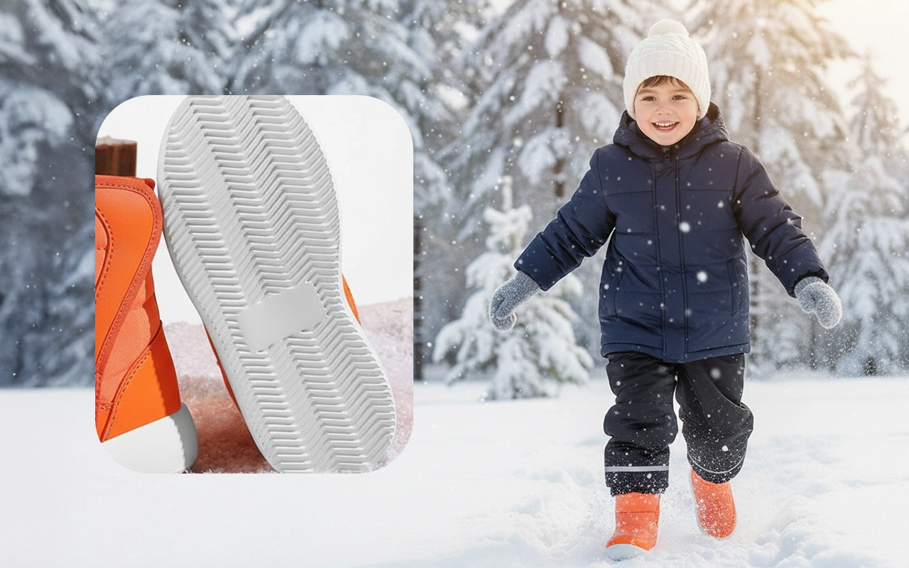 Αντιολισθητικές σόλες προσφέρουν σταθερό κράτημα σε παγωμένα ή βρεγμένα μονοπάτια. Λιγότερο άγχος για γλιστρήματα στις χιονισμένες βόλτες ή τις διαδρομές προς το σχολείο.