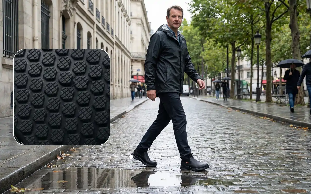 Βρεγμένα πατώματα ή υγρά δεν προκαλούν πια ξαφνικές πτώσεις στο σπίτι. Οι αξιόπιστες σόλες βοηθούν στην αποφυγή ατυχημάτων στη δουλειά ή στο σπίτι.
