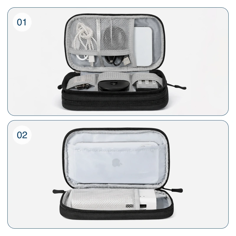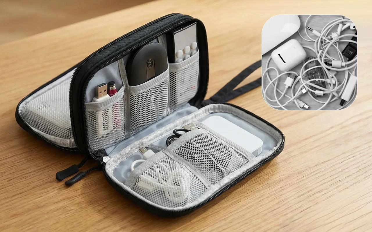 Τα μπερδεμένα καλώδια σας καθυστερούν και σας σπαταλούν χρόνο. Η θήκη Ortorex διατηρεί τα γκάτζετ τακτοποιημένα και εύκολα εντοπίσιμα. Πάρτε τη μαζί σας σε ταξίδια, στο σχολείο ή στη δουλειά. Απολαύστε ηρεμία γνωρίζοντας ότι τα απαραίτητα σας προστατεύονται πάντα.