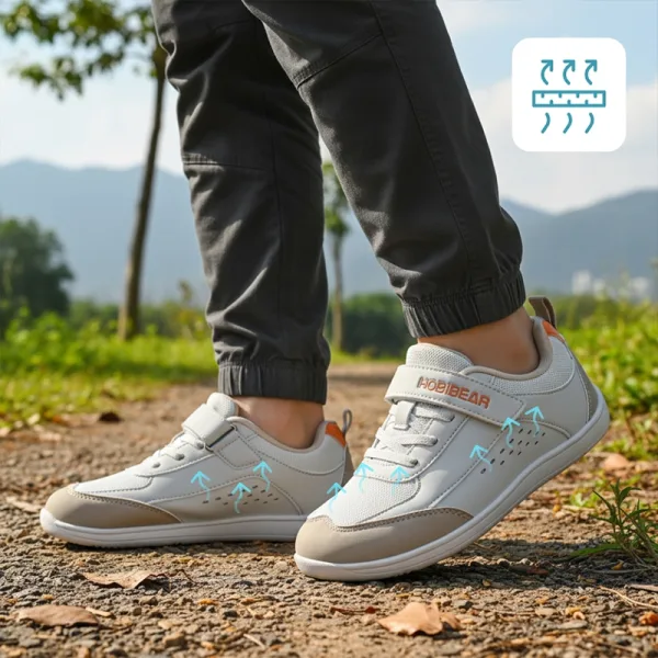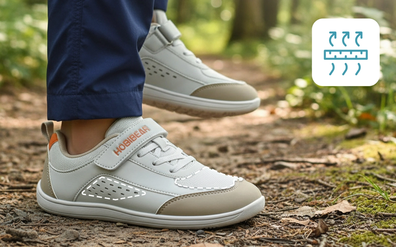 Τα παιδιά κρατούν τα πόδια τους χαλαρά καθώς τα δάχτυλα δεν στενεύουν ποτέ. Η φυσική διάταση ενισχύει την ισορροπία και την άνεση σε κάθε επιφάνεια.