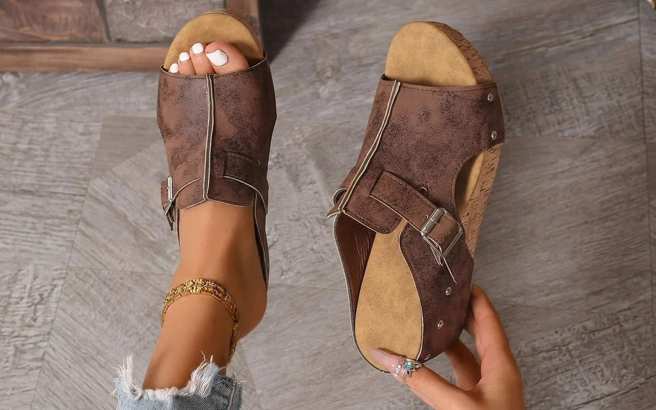 Έχω φαρδιά πόδια και συνήθως δεν αντέχω τα τακούνια, αλλά αυτές οι πλατφόρμες μου άλλαξαν γνώμη. Η μαλακή βάση και το εύκολο φόρεμα τύπου slide κάνουν τα καλοκαιρινά σύνολα να δείχνουν αβίαστα.